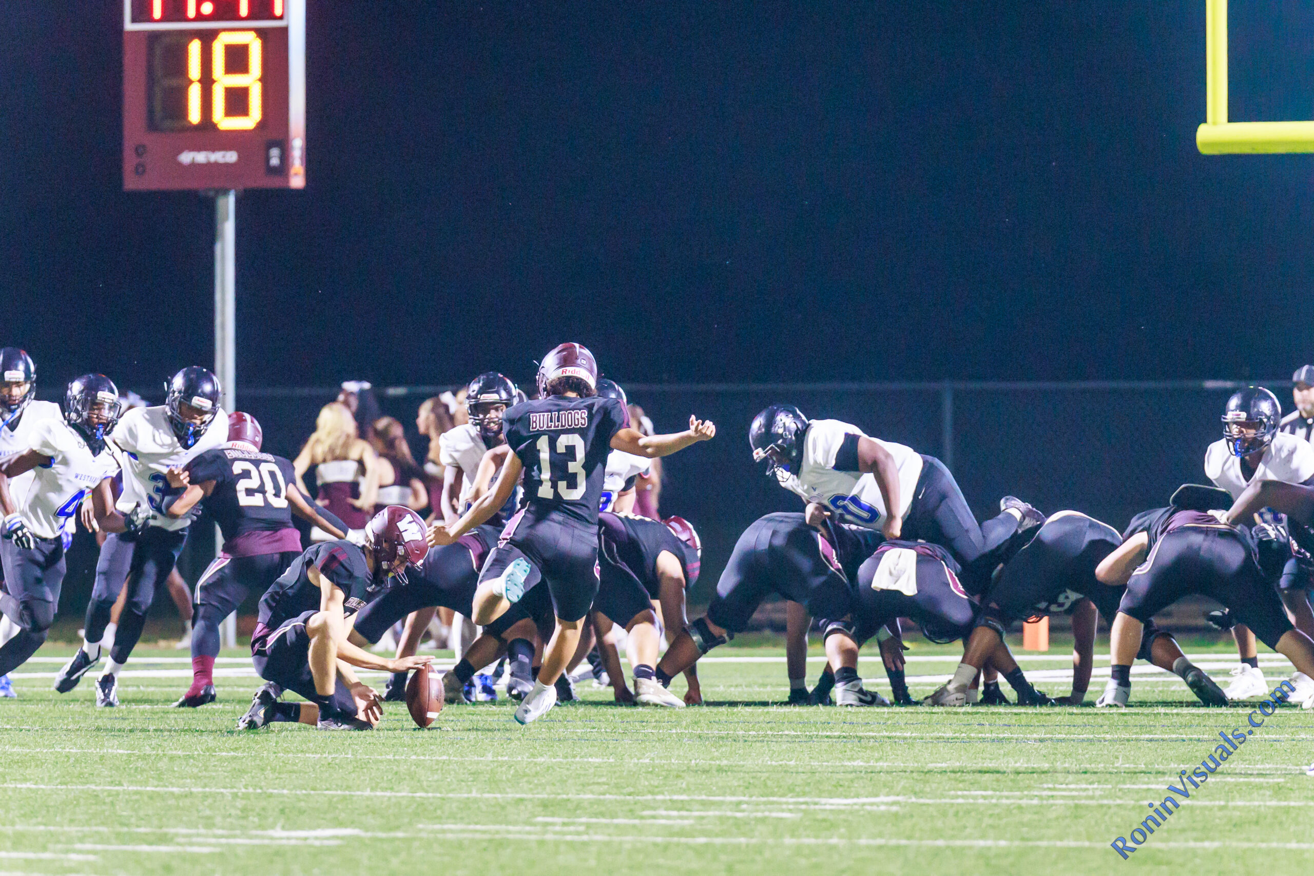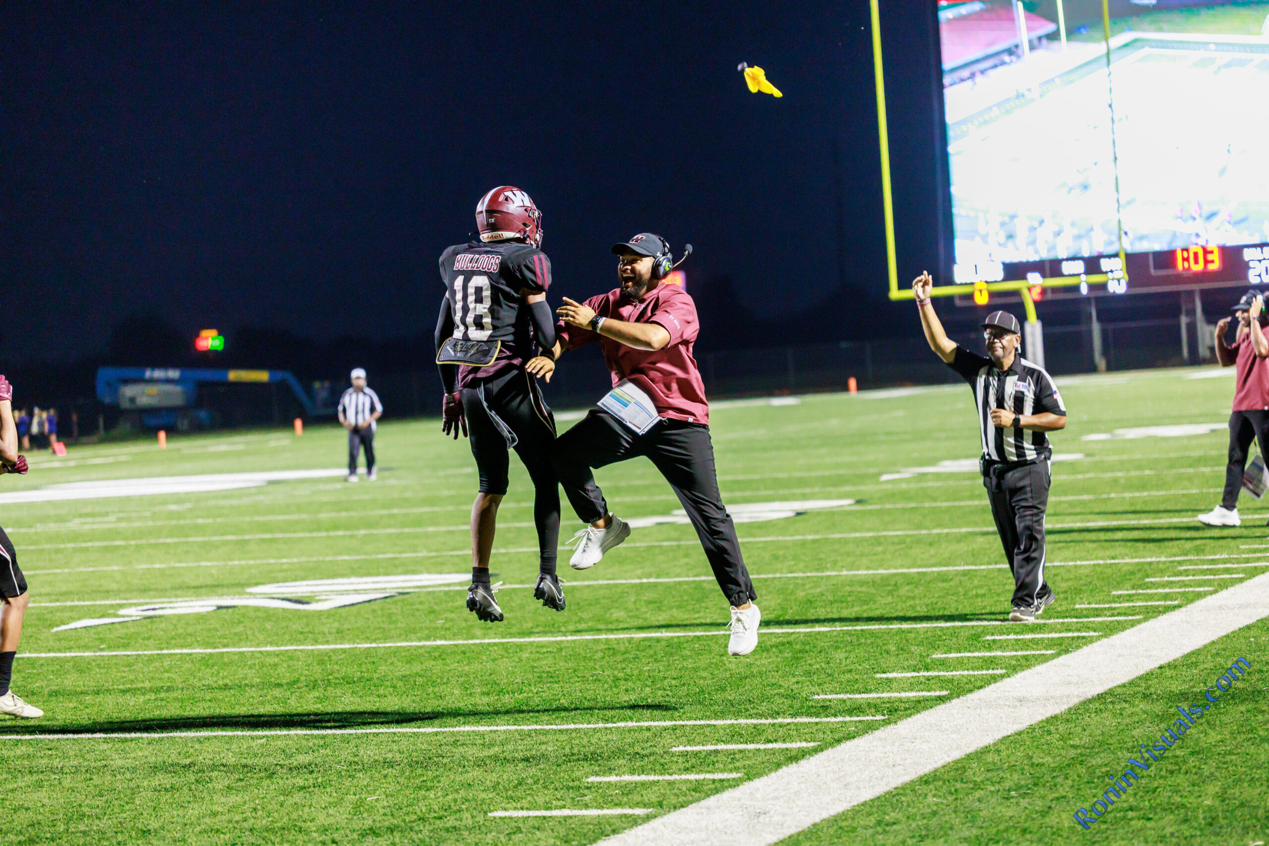 The Waller Bulldog football team wins their first homecoming game in nearly a decade, over Houston Westside, for the Bulldog’s second victory of the 2024 campaign, at Daikin Stadium in Waller, Sept. 13, 2024. (Photo by Creighton Holub, courtesy RoninVisuals.com)