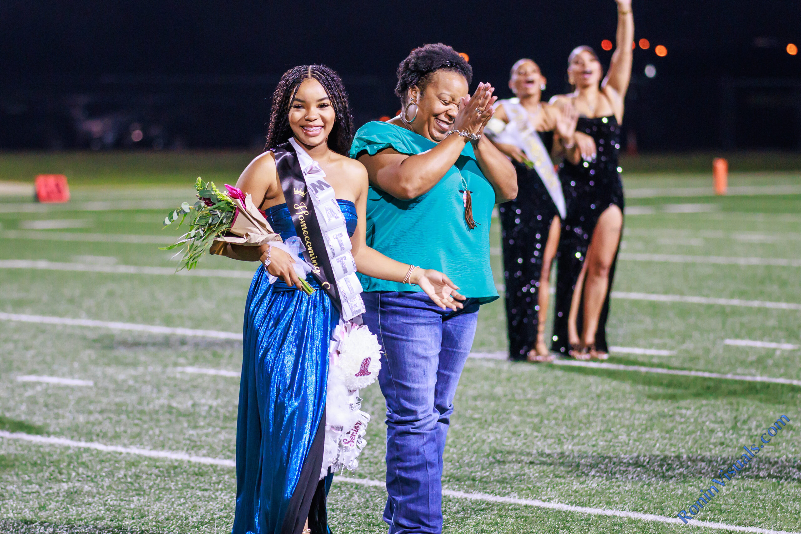 Homecoming King Thony Tshitenge and Queen Mattie Jones stand at the 50-yard line after being crowned during the halftime ceremony in Daikin Stadium on Sept. 13, 2024.