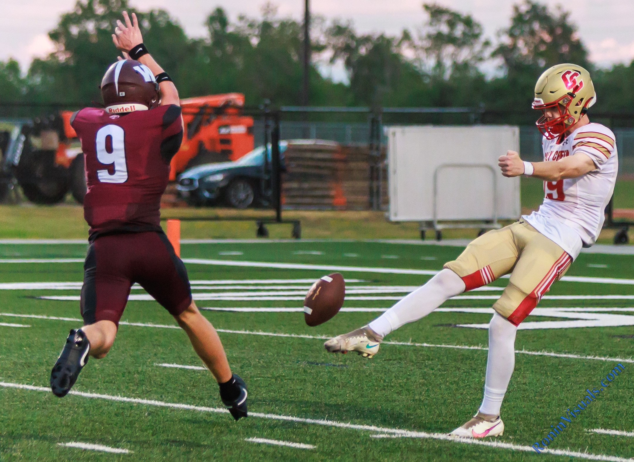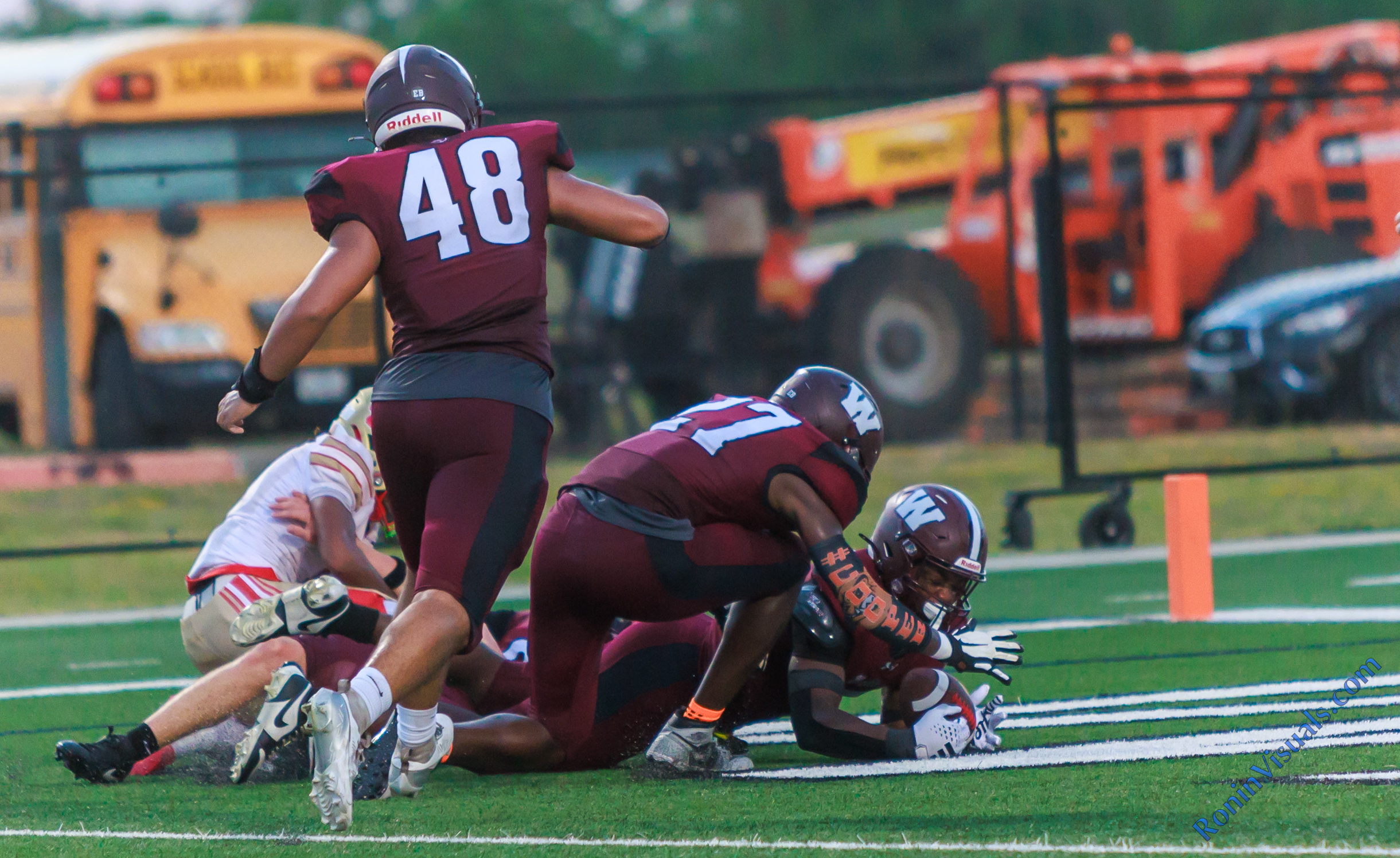 The Waller Bulldog football team defeats Conroe Caney Creek, 41-7, for the Bulldog’s first victory at home since 2021, at Daikin Stadium, Aug. 31, 2024. (Photo by Creighton Holub, courtesy RoninVisuals.com)